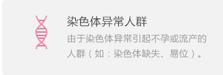 由于染色體異常引起不孕或流產的人群(如:染色體缺失、易位)。